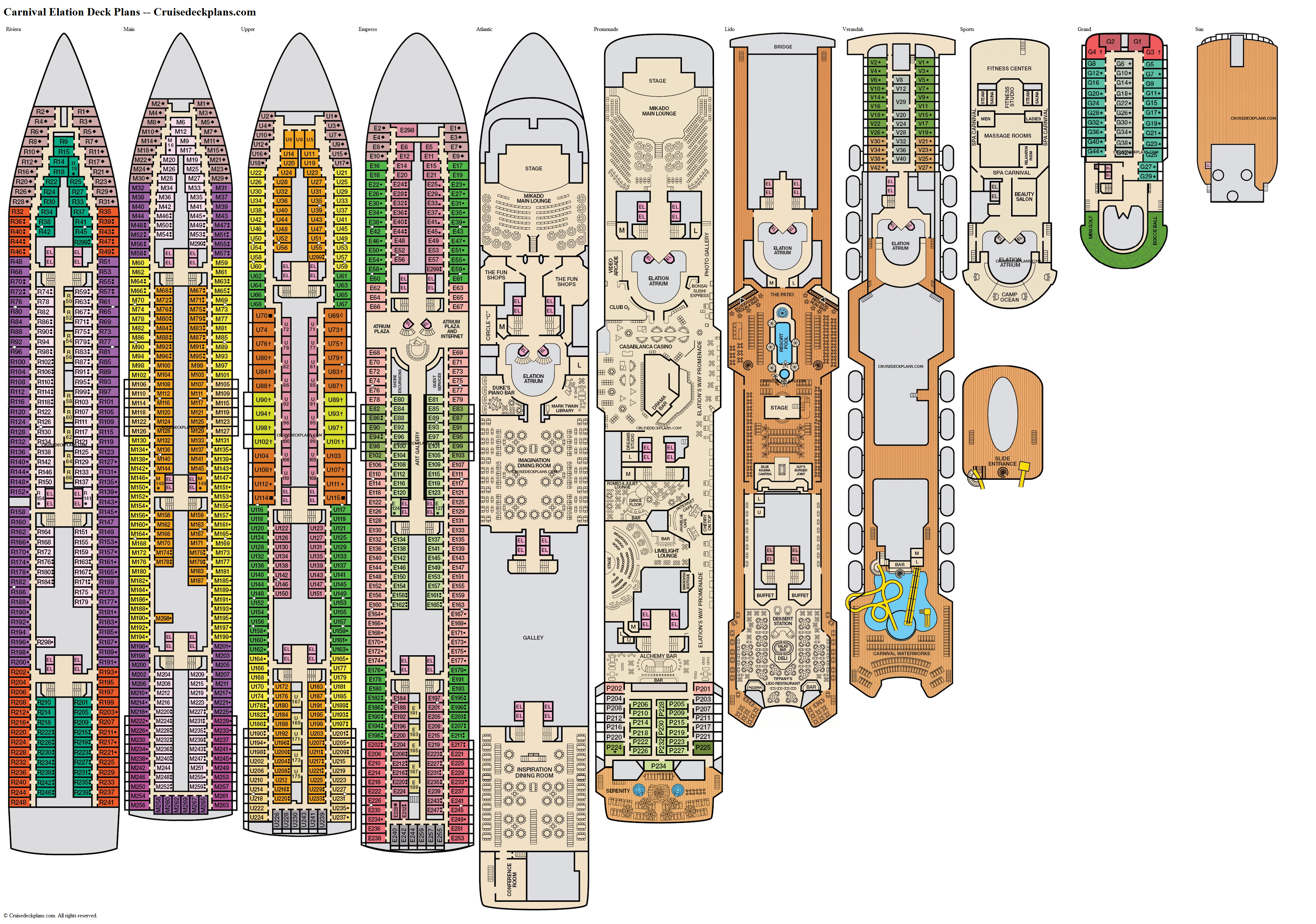 Each of the radiance of the seas cruise ship deck plans are conveniently combined with a legend showing cabin codes and detailed review of all the deck s venues and. Apr 2020 year built. Carnival radiance cruise ship deck plans. And priority reservations at the cloud 9 spa.