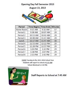 Chatsworth california 91311 818 678 7900 phone 818 349 4539 fax. Superior street elementary bell schedule every tuesday is banked tuesday with an early dismissal at 1 23. 7 55 am school hours. Description period start time end time length.